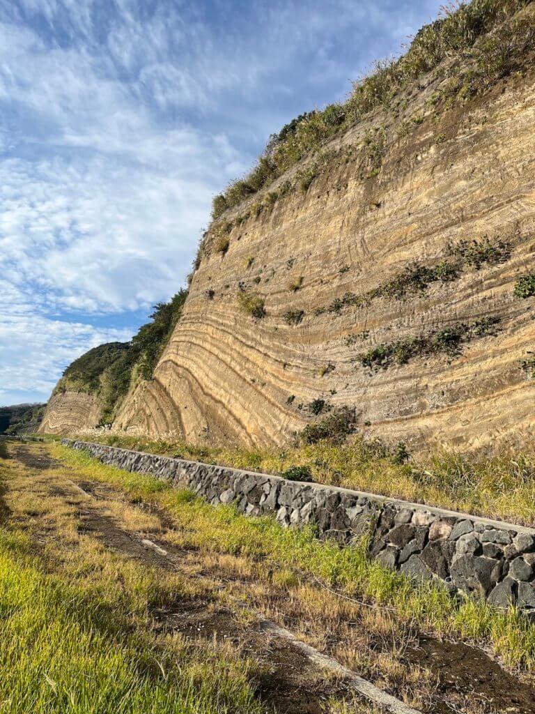 伊豆大島に着くと、観光地を回っていただきながら、農場なども見学させていただきました。裏砂漠や地層大切断面など今まで見たこともない迫力で、大地のパワーを感じました。