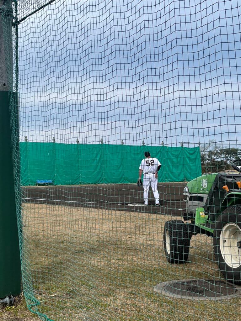 私、プロ野球のキャンプは行ったことがなく、テレビやyoutubeでしか見たことがなかったのですが、試合とはまた違った雰囲気があり、とても心が躍りました。なぜかJ-POPが大音量で流れていました。