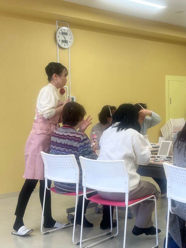 先日、ソシオエステティシャンの伊藤さんによるシニアスキンケアレッスンの講座を見学させていただきました。