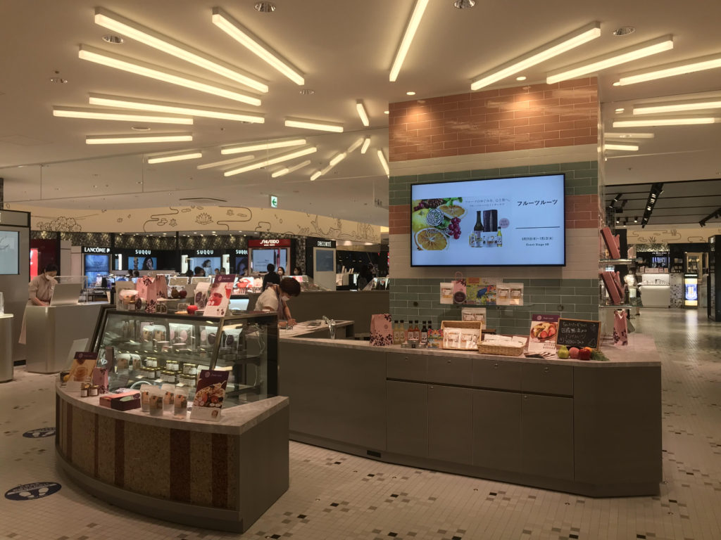 とても広い売場をいただいており、インナーケア、ボディケア商品を中心にラインナップしております。コロナの影響で、試食やタッチアップが難しい状況ではありますが、目でも楽しんでいただける明るい売場になっています。